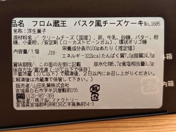 フロム蔵王が販売しているバスク風チーズケーキを購入してみました。